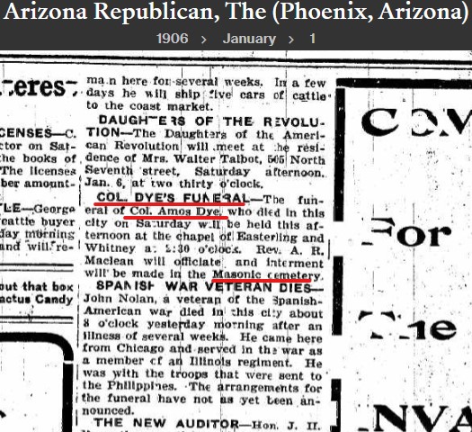 On January 1, 1906, the Arizona Republican (Phoenix) published a notice for your funeral. I found the notice at https://www.ancestry.com/imageviewer/collections/6866/images/NEWS-AZ-TH_AR_RE.1906_01_01_0012?pId=475038732